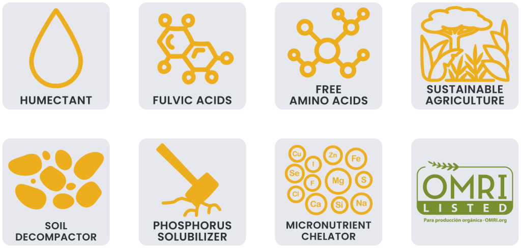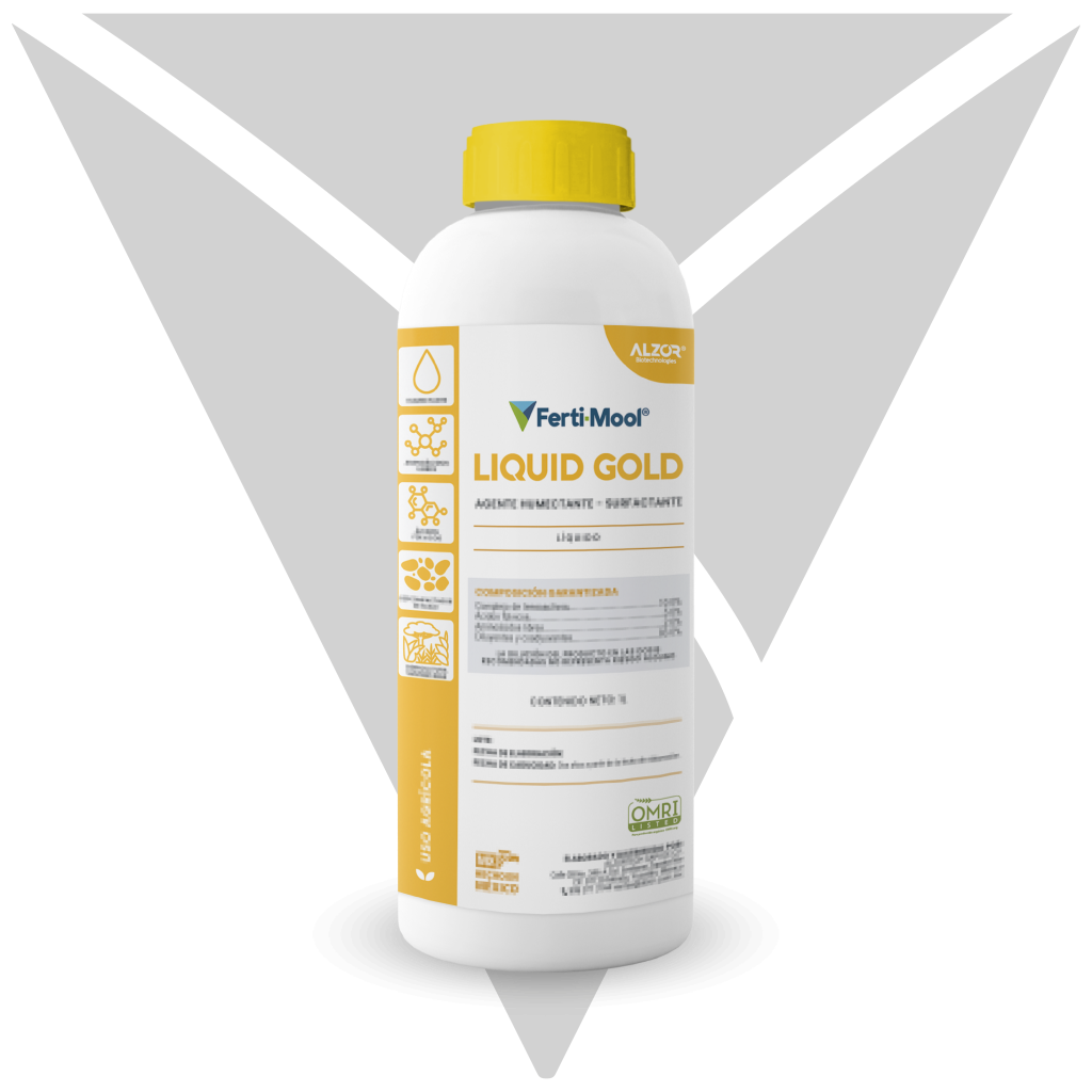 Ferti-Mool LIQUID GOLD is a wetting agent based on a complex of surfactants and amino acids used as biosurfactants, which break the surface tension of the soil to improve water infiltration and reduce compaction. Fulvic acids and amino acids, such as glutamic acid, promote better root growth, as well as improving plant hydration and nutrition. It increases aeration and supports the development of beneficial microorganisms. It also unlocks nutrients such as phosphorus and potassium present in the soil.