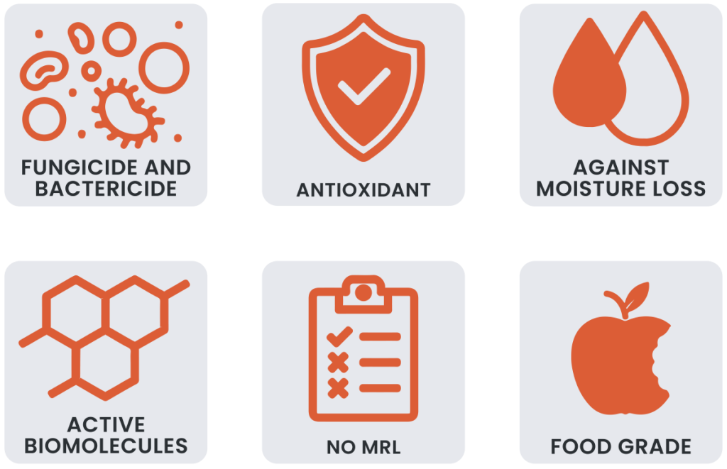 Frottul is a food-grade coating designed to extend the shelf life of both green and ripe fruits. Its triple-action formula creates a protective barrier that provides antioxidant and healing benefits, fights fungal and bacterial threats, and prevents moisture loss.This comprehensive protection ensures your fruits stay fresh and resilient during long-distance transport, offering strong defense against anthracnose and bacterial rots.